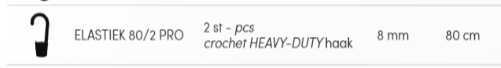 2 elastieken 8mm 80cm lengte + haken